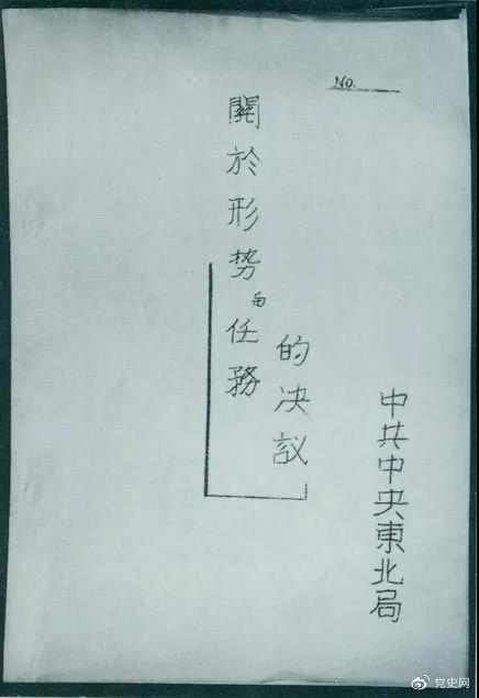 1946年7月,中共中央東北局通過了由陳云起草的《關(guān)于形勢與任務(wù)的決議》,確立了創(chuàng)建根據(jù)地與進(jìn)行長期艱苦戰(zhàn)爭的方針。該決議經(jīng)中共中央修改和批準(zhǔn)后,于8月12日正式發(fā)出。圖為決議的翻印本。