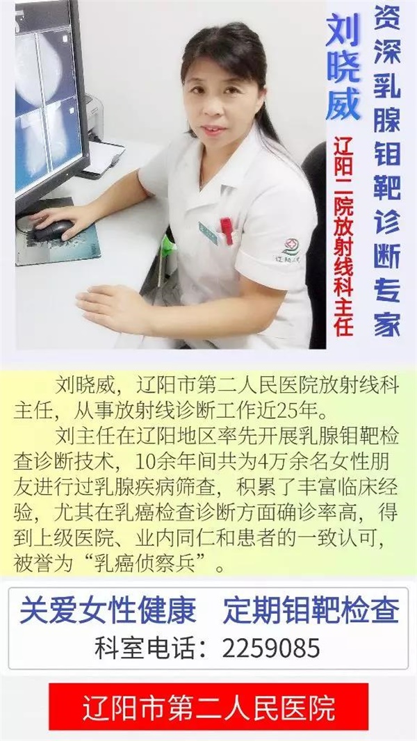 遼陽二院放射科乳腺鉬靶檢查設備先進,由放射科科主任劉曉威主檢,